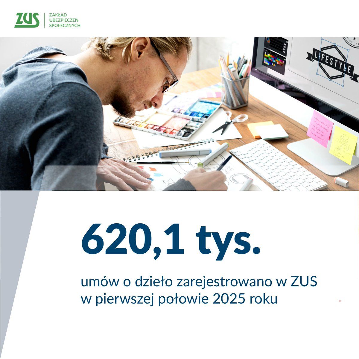 Umowy o dzieło w Polsce pozostają domeną krótkich zleceń – aż 28 proc. trwa jeden dzień. Najwięcej wykonawców to osoby w wieku 30–39 lat. Dane ZUS za pierwsze półrocze wskazują też na rosnący udział sektorów kreatywnych, takich jak informacja i komunikacja.