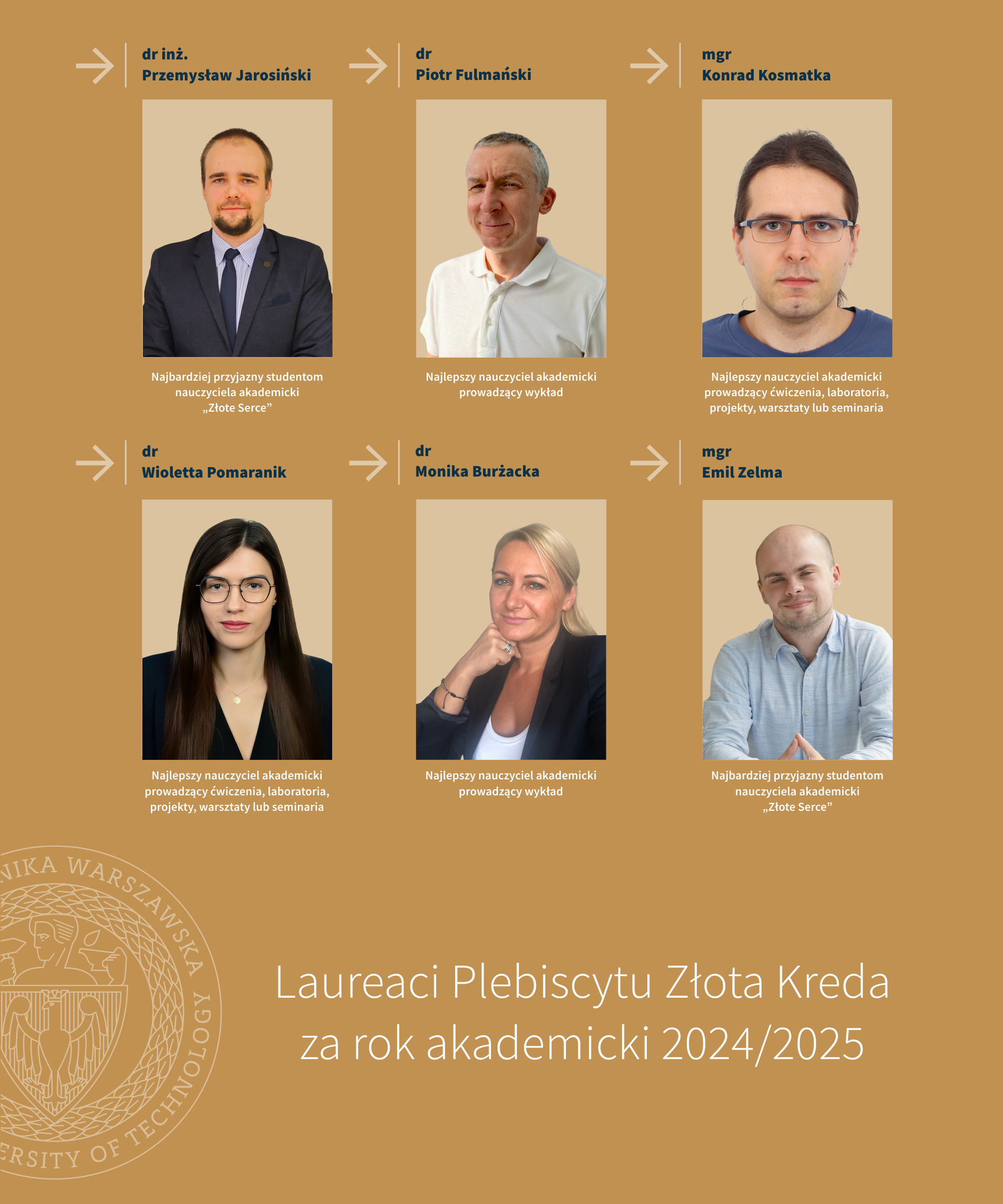 - mgr Konrad Kosmatka – najlepszy prowadzący ćwiczenia/laboratoria/projekt/seminarium,