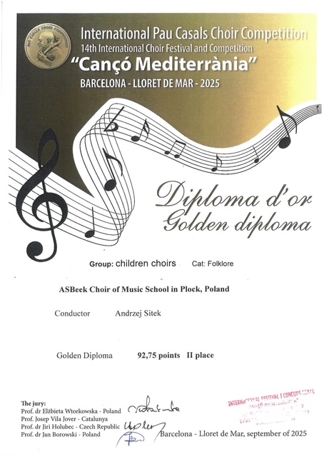 Dwa złote dyplomy na konkursie chóralnym w Hiszpanii zdobył dziecięcy chór AsBeek, działający przy płockich szkołach muzycznych. To ogromne wyróżnienie, bo w festiwalu w Lloret de Mar biorą udział chóry z całego świata, w tym roku m.in. z Filipin, Peru, Estonii, Finlandii czy Czech.