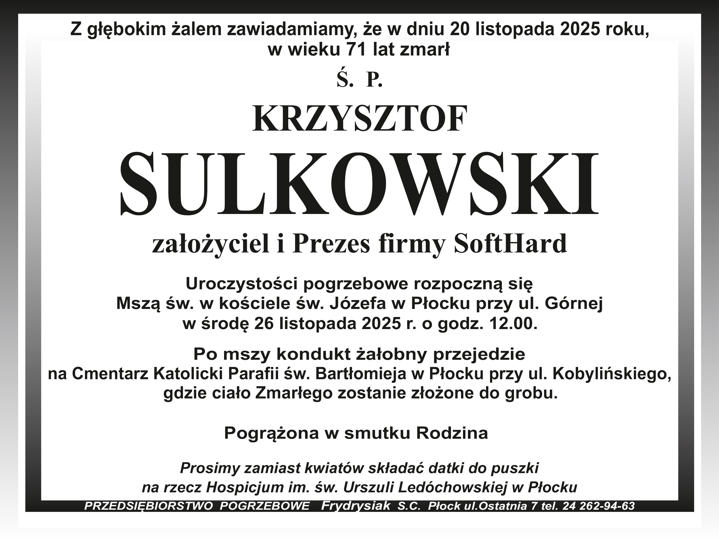 Zmarł Krzysztof Sulkowski - założyciel i Prezes firmy SoftHard