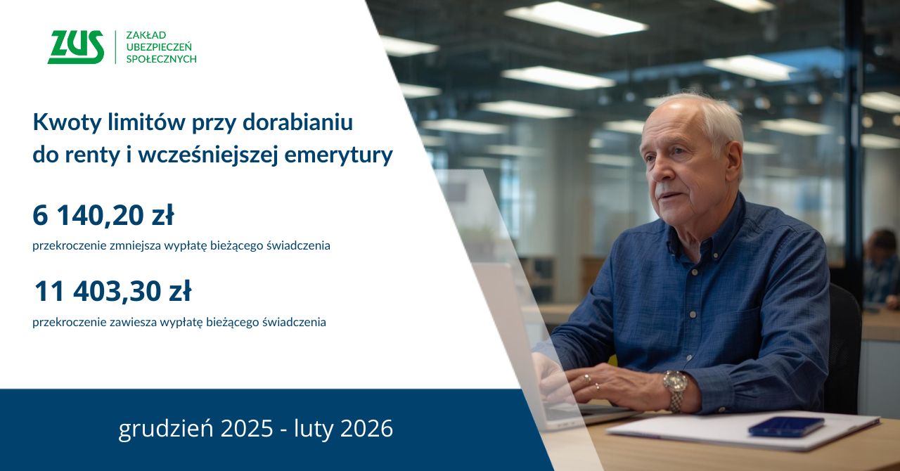 Nowe limity obowiązują w okresie od grudnia do końca lutego 2026 roku. Szczegółowe informacje można znaleźć na stronie internetowej ZUS oraz w placówkach Zakładu.